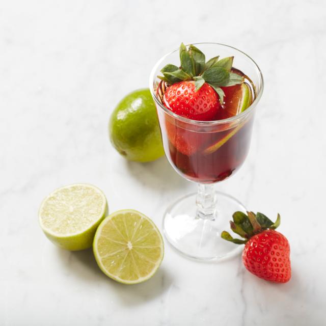 Gaivus vasariškas punšas su braškių arba aviečių sirupu