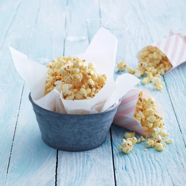 Nuimkite nuo ugnies, suberkite maistinę sodą, greitai užpilkite ant spragintų kukurūzų ir išmaišykite.
